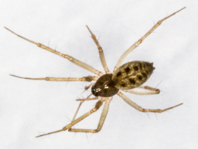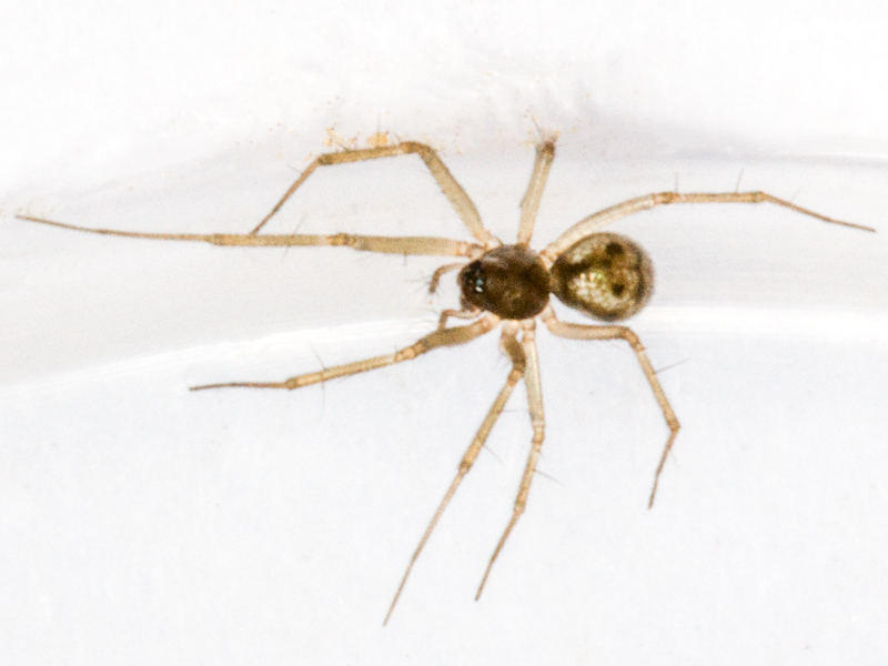 This appeared in a pitfall trap. Using the Collins guide this keyed to genus Lepthyphantes which of course tenuis was a member of when Collins was published. I had an inkling it might be tenuis based on a comparison of online images but all the references seemed to agree that you need to check the male palps or female epigyne for a certain ID. I couldn't make out enough detail of the epigyne initially so left the abdomen in some warm potassium hydroxide solution for a while to clear it. That improved things, but the abdomen was still full of gunk and visibilty still wasn't good enough. With a bit of gentle persuasion I managed to clear enough of the gunk out of the abdomen to see it properly. Even then I couldn't completely convince myself simply by comparing it with the diagrams in Collins, but after checking all the members of the genus at the Spiders of Europe website I was finally convinced.