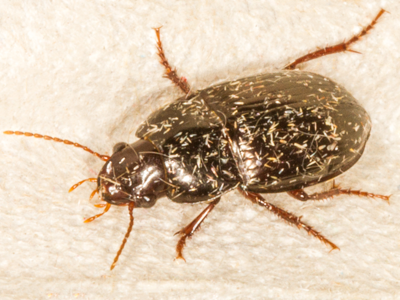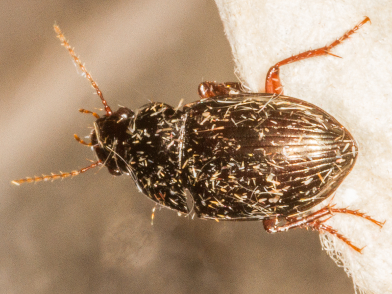 This came to light in my garden. The specimen was covered in moth scales and then unfortunately became quite mouldy before I examined it and I nearly disposed of it without securing an identification. However there was just enough reason to think it might not be one of the Amara that I'm more familiar with so I set about scraping off the mould from the bits that mattered like the corners of the pronotum.