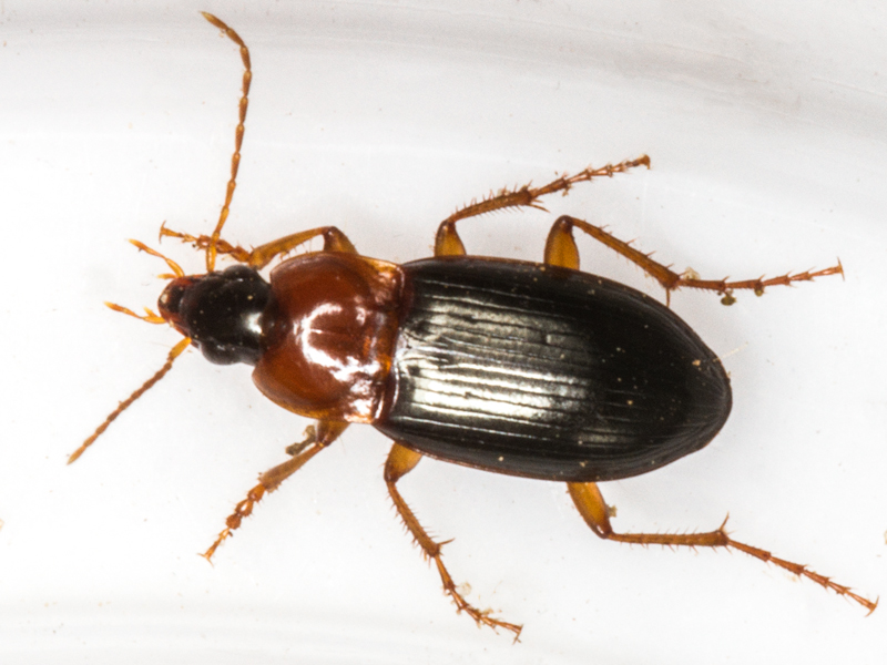 Now suspecting that ObsID might actually have been correct, I dissected all three and confirmed that the one with toothed humeri and shorter elytra, below, was indeed melanocephalus, the one that had originally prompted me to check it was female so not genitalically confirmable, and the other one was indeed a male cinctus. At this point I searched the internet for photos of Calathus cinctus and discovered that individuals with almost black heads and elytra seem to be quite frequent.