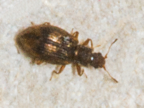 This one was suctioned from my lawn. Duff describes this species (and Cartodere satelles) as having "Elytra without noticeable elevations in the posteror half." To my eyes at least one elytral interval is pretty obviously elevated so it would be easy to get confused here. Having said that Duff also describes Cartodere nodifer (the one that should have noticeable elevations) as being unicoloured which this very clearly isn't.