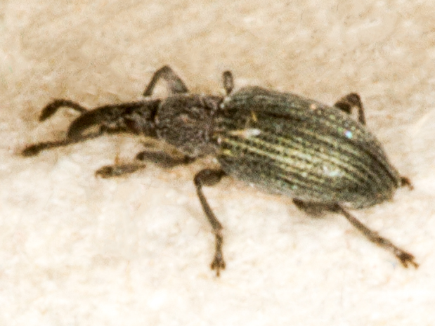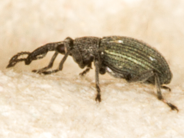 I really struggled to identify this. I examined it at the same time as a Ceratapion onopordi, so that was easy to eliminate, but choosing between gibbirostre and carduorum was problematic. Both Duff and Hackston major on the shape of the rostral swelling, rounded on carduorum and angled on gibbirostre, with Duff stressing that this must be viewed from directly above. Now there's a question as to what "directly above" means here, as the swelling is on the curve of the rostrum. Should the beetle as a whole be level, or should it be angled back slightly so that the tangent to the rostrum at the point of the swelling is flat? Anyway, either way, it seemed to me to be clearly rounded, which should make it carduorum (apparently the scarcer of the two species, though by no means rare).