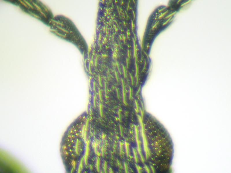 To give more of an idea of how green the elytra were, here is the same beetle together with a much bluer Ceratapion onopordi.