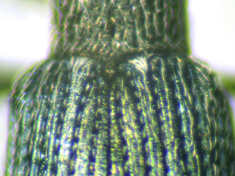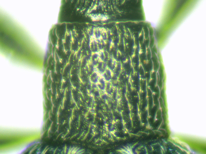 Ceratapion onopordi showing close-ups of base of elytra, humerus, antenna, pronotum and frons with base of rostrum, Wendling Beck Environment Project (Norfolk, UK), 25th August 2025