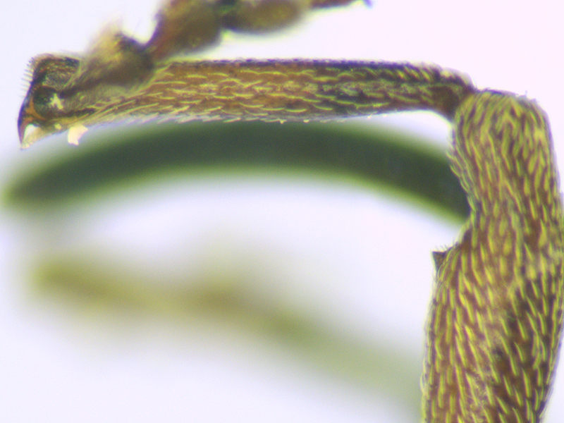 female Dorytomus tortrix showing tarsal claw, prosternum, side of head, elytra, base of rostrum, side of prosternum, pronotum, fore tibia, rostrum and spermatheca, Bintry Mill (Norfolk, UK), 17th May 2023