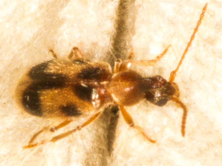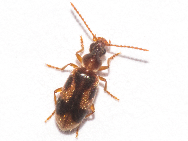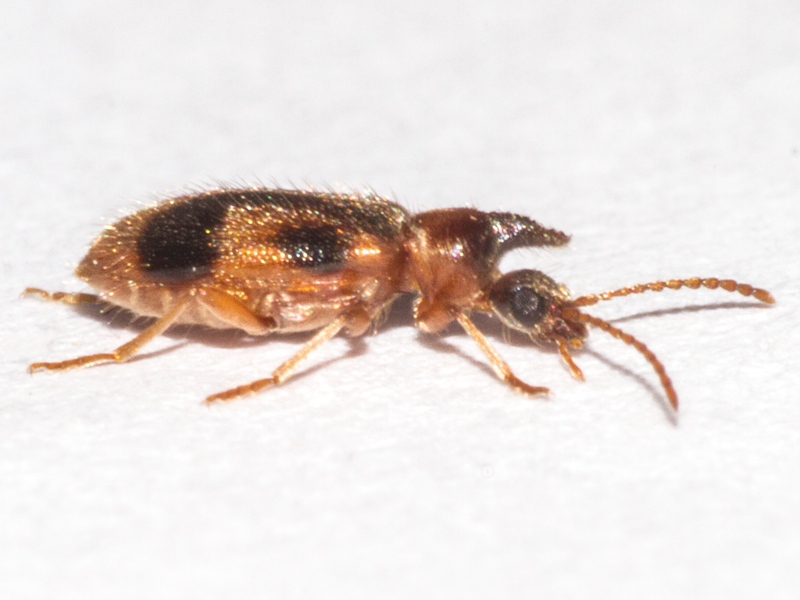 Although this species has a distinctive 'horn' projecting forwards on its pronotum, this is only obvious when viewed from the side.