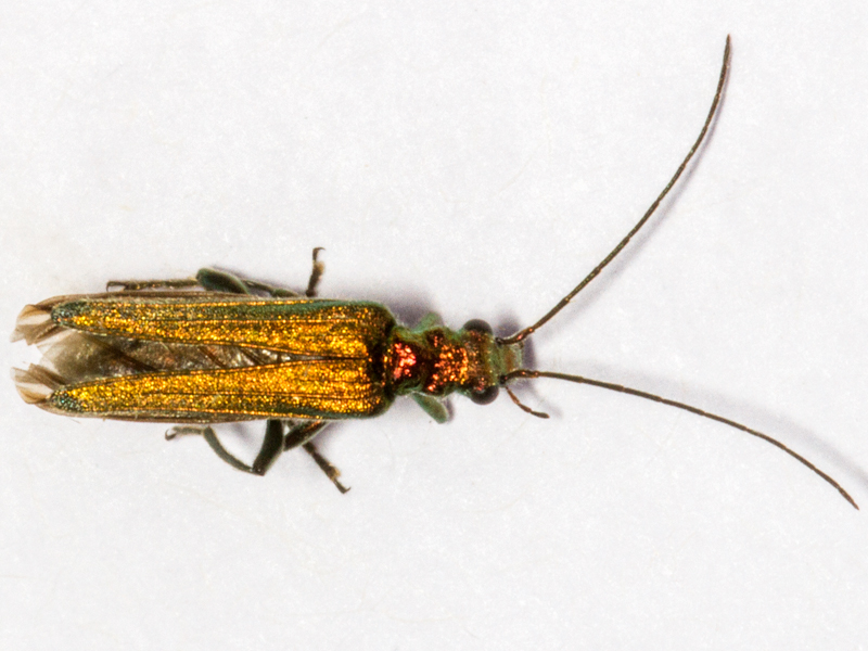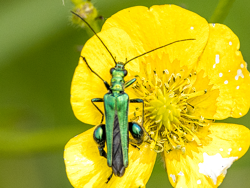 male Swollen thighed Beetle Oedemera nobilis, North Elmham Cathedral Meadows (Norfolk, UK), 3rd June 2022