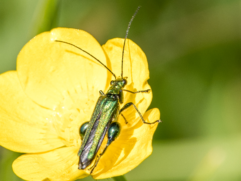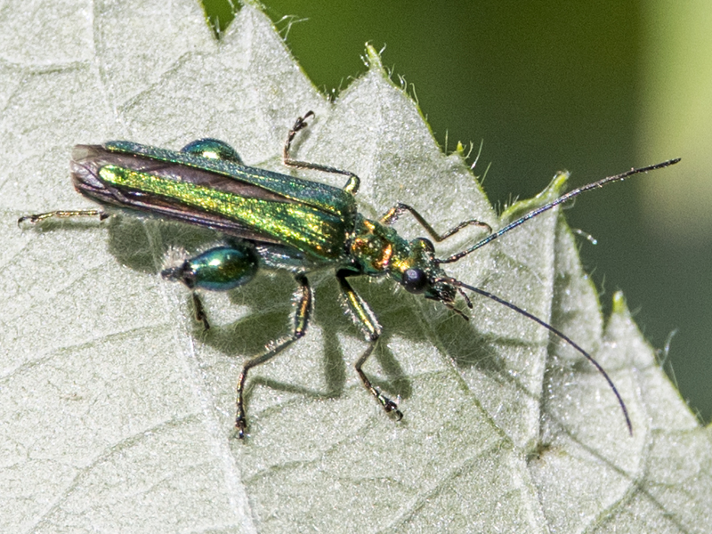 male Swollen thighed Beetle Oedemera nobilis, North Elmham Cathedral Meadows (Norfolk, UK), 27th May 2020