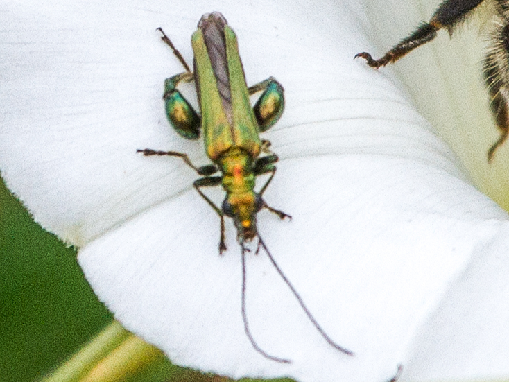 female Swollen thighed Beetle Oedemera nobilis, North Elmham Cathedral Meadows (Norfolk, UK), 20th July 2020