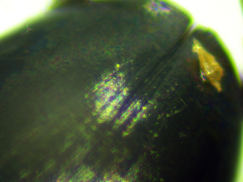 These were found together by suction at a site where I've regularly light-trapped over the last couple of years so I'm guessing this species may be more reluctant to come to light than some of the other Olibrus. It was obviously blacker than the Olibrus I'm more familiar with, and the way the sutural striae failed to converge towards the apex was another difference. They were just over 2mm long.