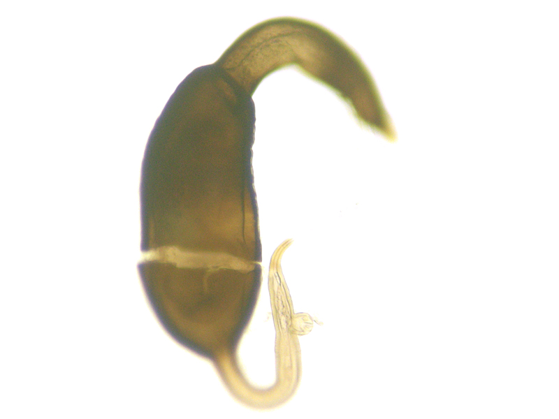 female Cabbage-stem Flea Beetle Psylliodes chrysocephala showing spermatheca, North Elmham (Norfolk, UK), 28th May 2020