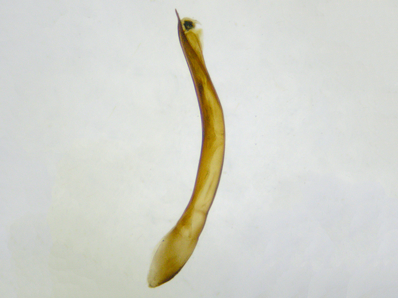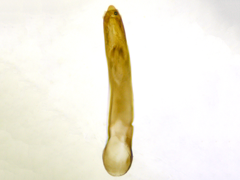 male Cabbage-stem Flea Beetle Psylliodes chrysocephala showing aedeagus (flat and side views plus close-ups of apex in both views), St Mary's churchyard, North Elmham (Norfolk, UK), 7th August 2021