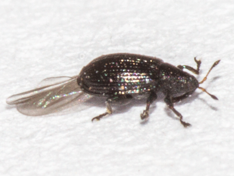 During a Norfolk Moth Survey leaf-mining day in October 2018 I was shown leaf-mines of the micro-moth Goat Willow Leaf-miner Phyllonorycter dubitella. This is a scarcely recorded moth and I had not - and at the time of writing still have not - seen the adult, so I took a number of leaves home that had mines in the hope of rearing one through. This I failed to achieve, however in the spring when I brought the leaves in from outside a tiny (1.6mm) beetle emerged. I subsequently identified this as Rhamphus pulicarius, a species known to mine various tree and shrub species including willows. I had not noticed the Rhamphus mine on the leaves, so did not photograph it (I think I can probably see it on one or two of my photos of the Phyllonorycter mines, but it's out of focus and partly out of the shot).