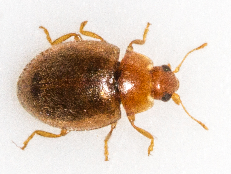 That was closely followed by this one, swept from the same site. The identification of this one was slightly problematic for me as the literature suggests that the shape of the prosternal keel is the best way to tell it from the scarcer Round-keeled Rhyzobius Rhyzobius chrysomeloides. The overall pale elytra with the U-shape mark the only dark markings, and the habitat (swept from a field away from conifers), made this one much more likely to be litura not chrysomeloides but I was puzzled as the prosternal process seemed to have a more rounded point like chrysomeloides. It was 2.7mm long. I thought it was worth checking with the county recorder for a second opinion and as expected Martin confirmed that it was litura citing the shape of the pronotum as another helpful difference between the two species.
