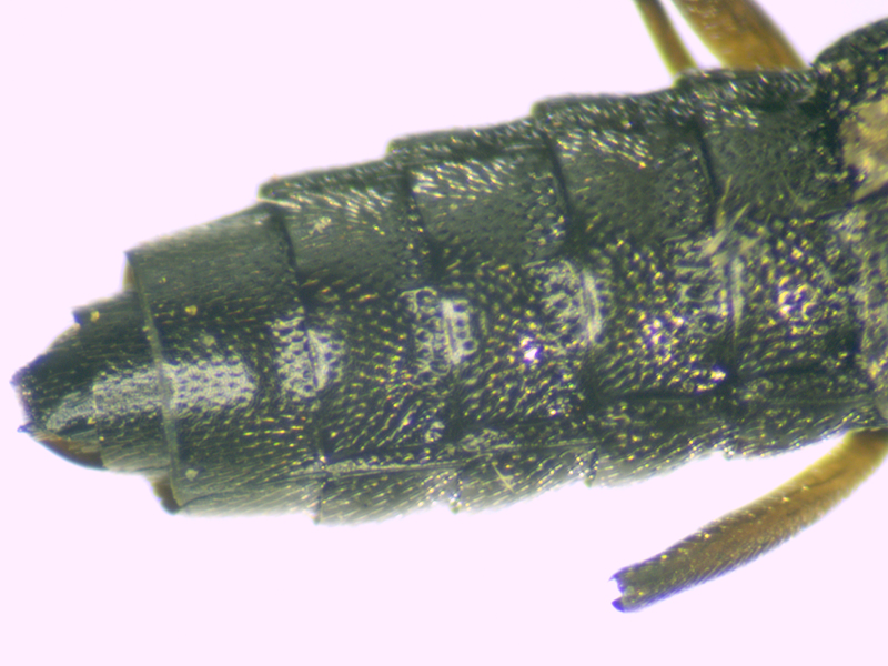 male Stenus clavicornis showing hind leg, hind tarsus, basal tergite, elytra, tergites 6 & 7, other tergites and aedeagus, Wendling Beck Environment Project (Norfolk, UK), 17th April 2025
