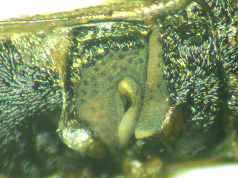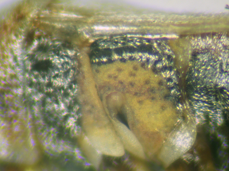 male Nysius graminicola showing hind tarsus, metapleuron, bucculae, genital capsule and its aperture, Wendling Beck Environment Project (Norfolk, UK), 26th September 2025