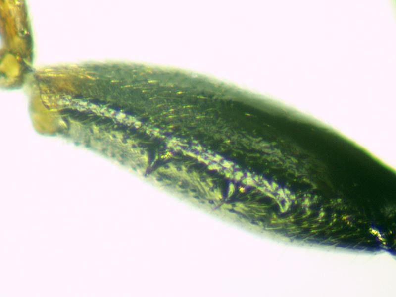 This was found by suction on an ex-arable lowland meadows. Separation from Peritrechus nubilus seems to revolve around the thickness of the third antennal segment and the shape of the pronotum. The third segment should be as thick or thicker than the first segment on this species, thinner on nubilus. In fact I made it very slightly thinner on this one (0.12mm vs. 0.13mm) but I think these are close enough to be considered about the same. Comparing with photos of both species (including my own of nubilus) it seems to fit geniculatus best on both antennal width and pronotum shape. Both species are supposed to be common.