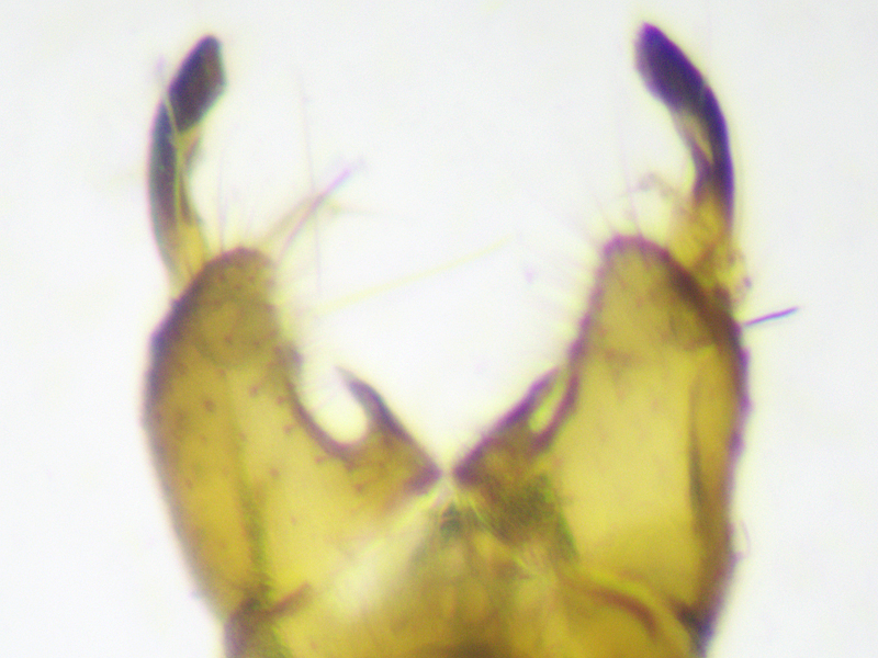 This one was swept from Hazel in a semi-natural ancient woodland. The wing pattern is diagnostic (this one's wing was 5mm long). It shouldn't normally be necessary to refer to the genitalia to identify this species but as I had a male specimen I figured I might as well show it. I'm not sure how much they differ from Ilisia occoecata (male genitalia is only illustrated in Stubbs (2021) for occoecata and looks pretty similar to my specimen - maybe the black styles aren't shown quite as long as is my maculata?)